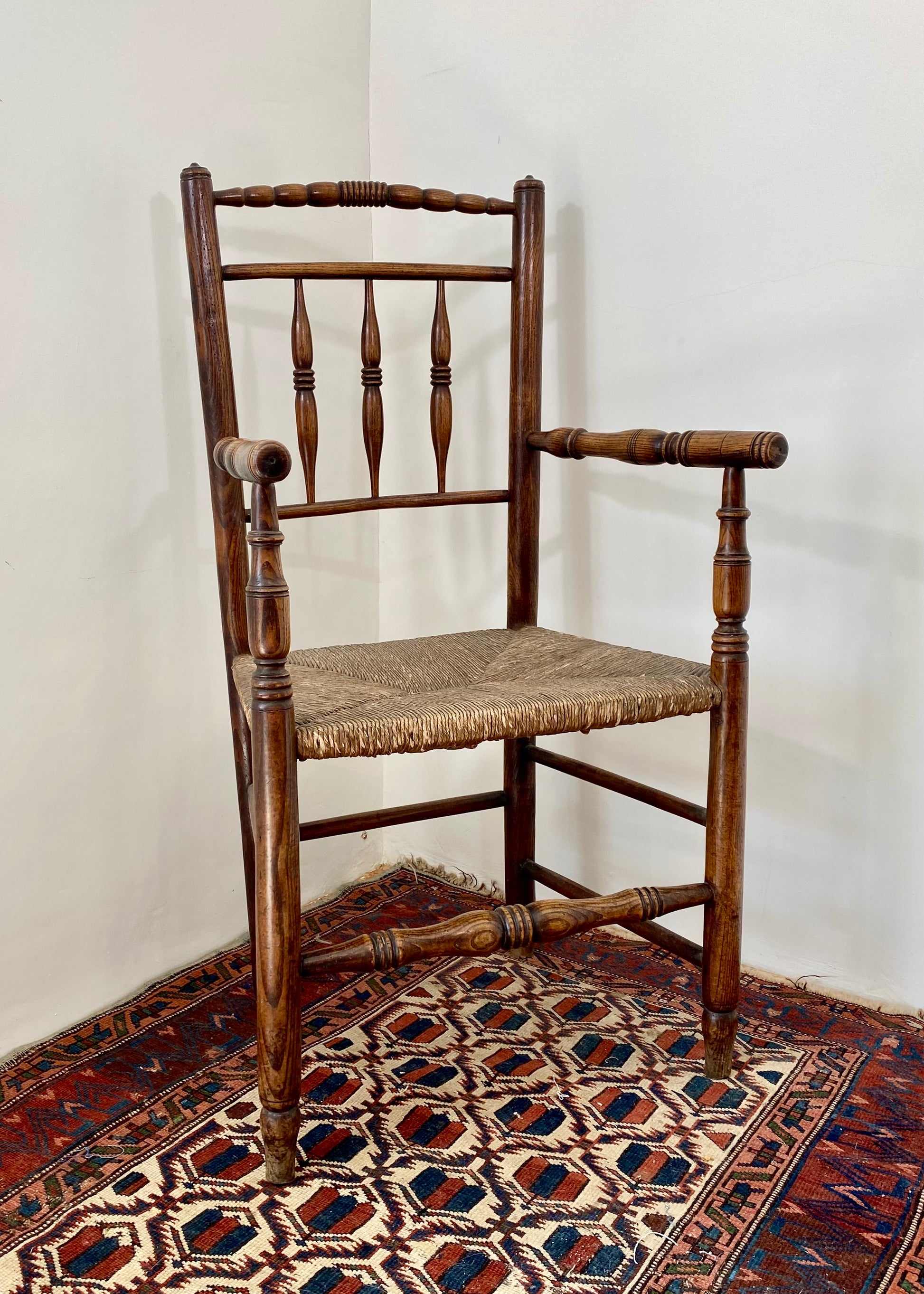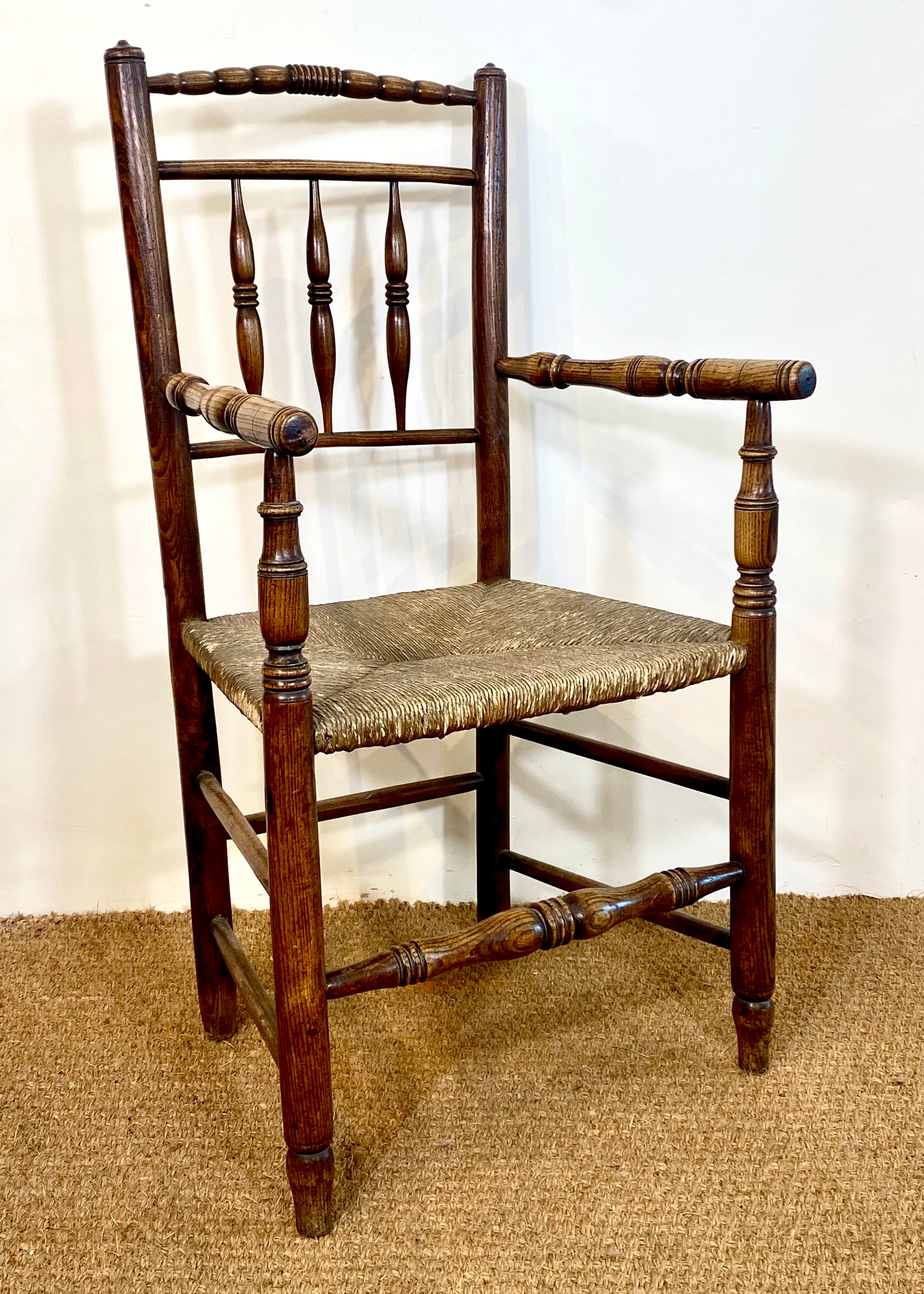 Excellent Ash and Rush Seated chair with fabulous turning - circa 1820.