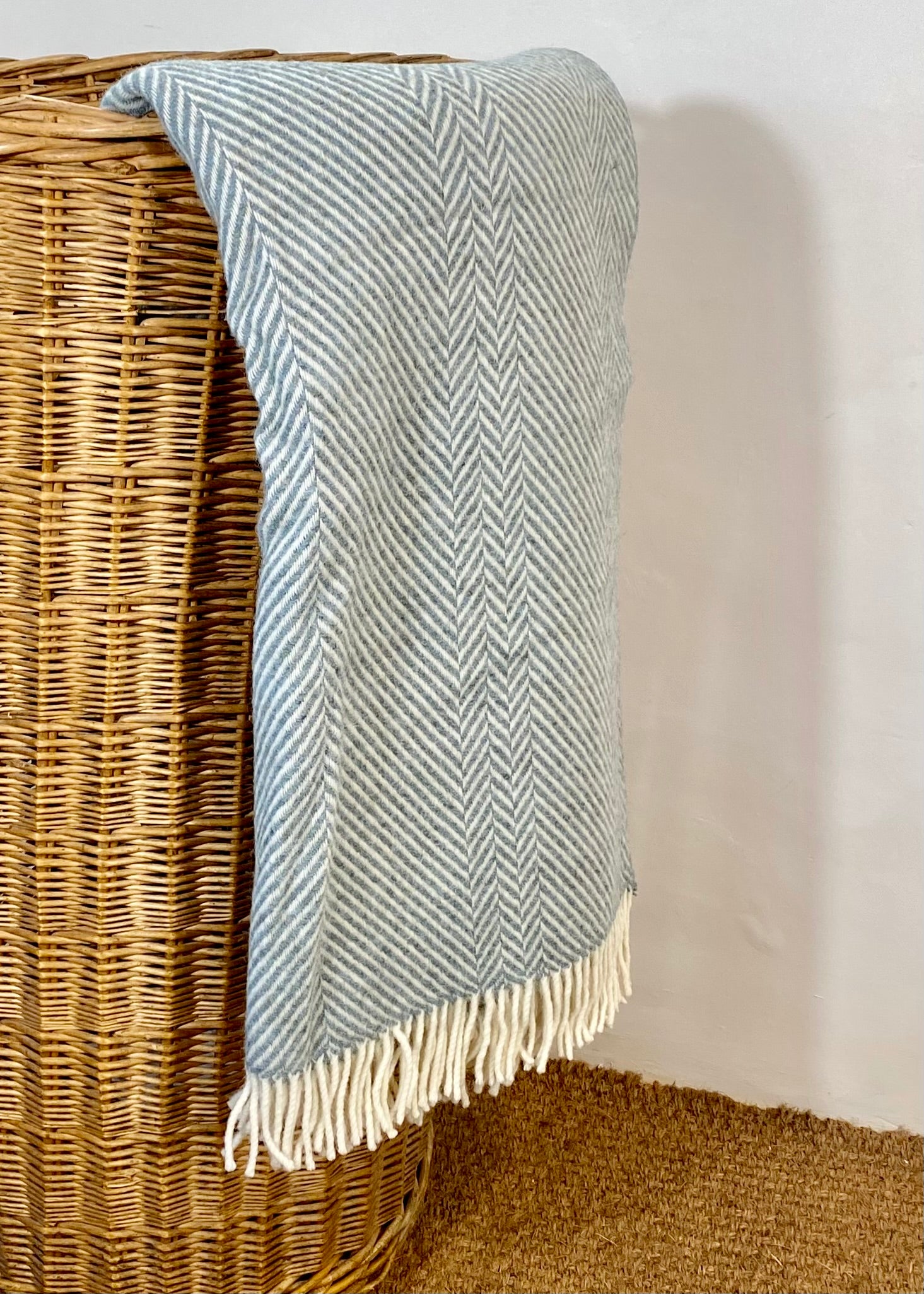 Wool Blanket Herringbone Duck Egg - 100% Shetland wool