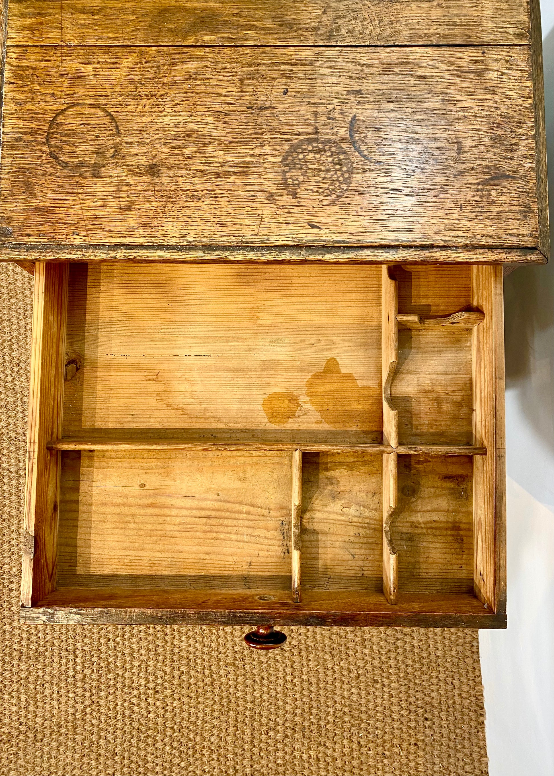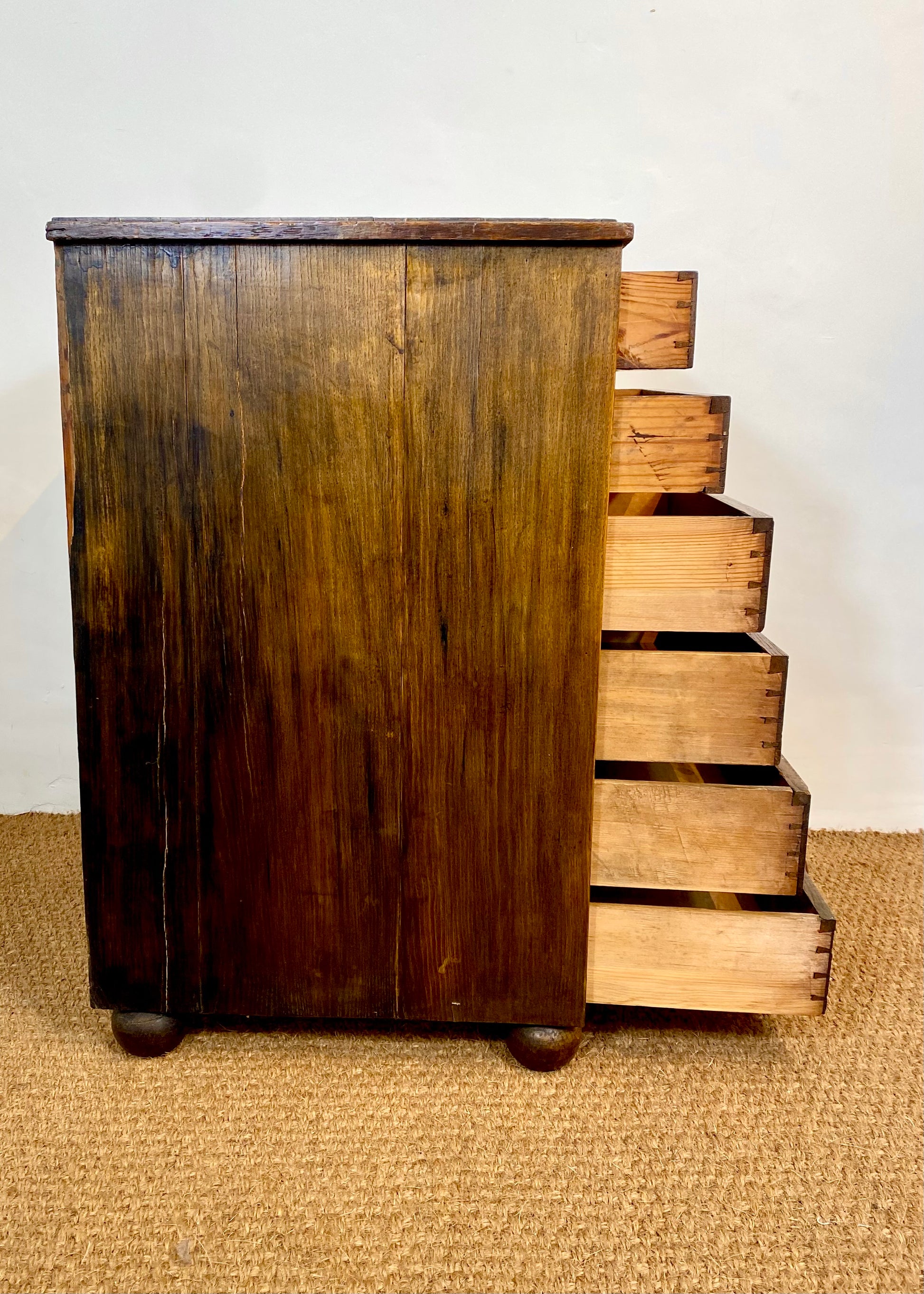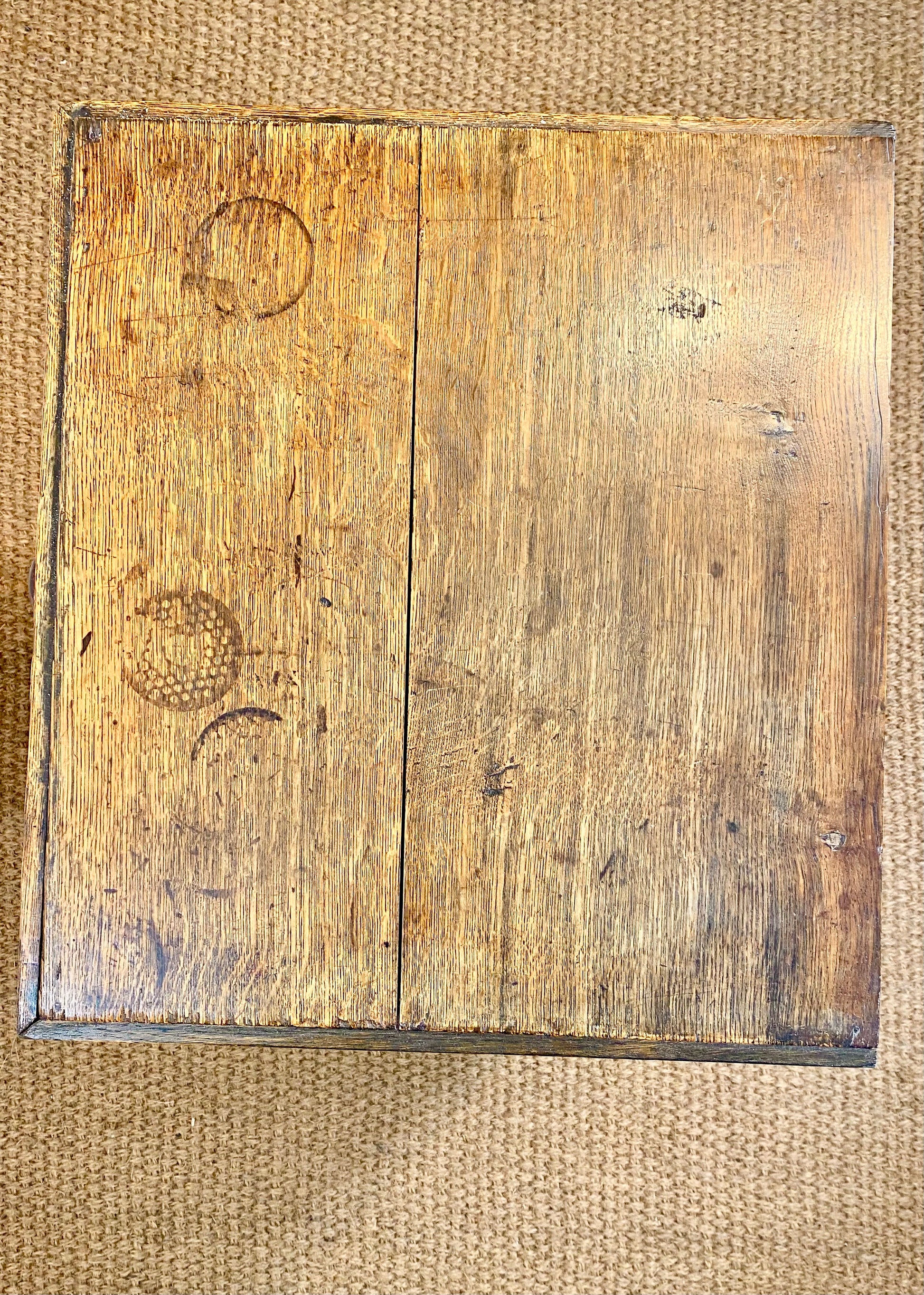 A set of 6 oak office drawers of small proportions. With lovely turned handles and bun feet.