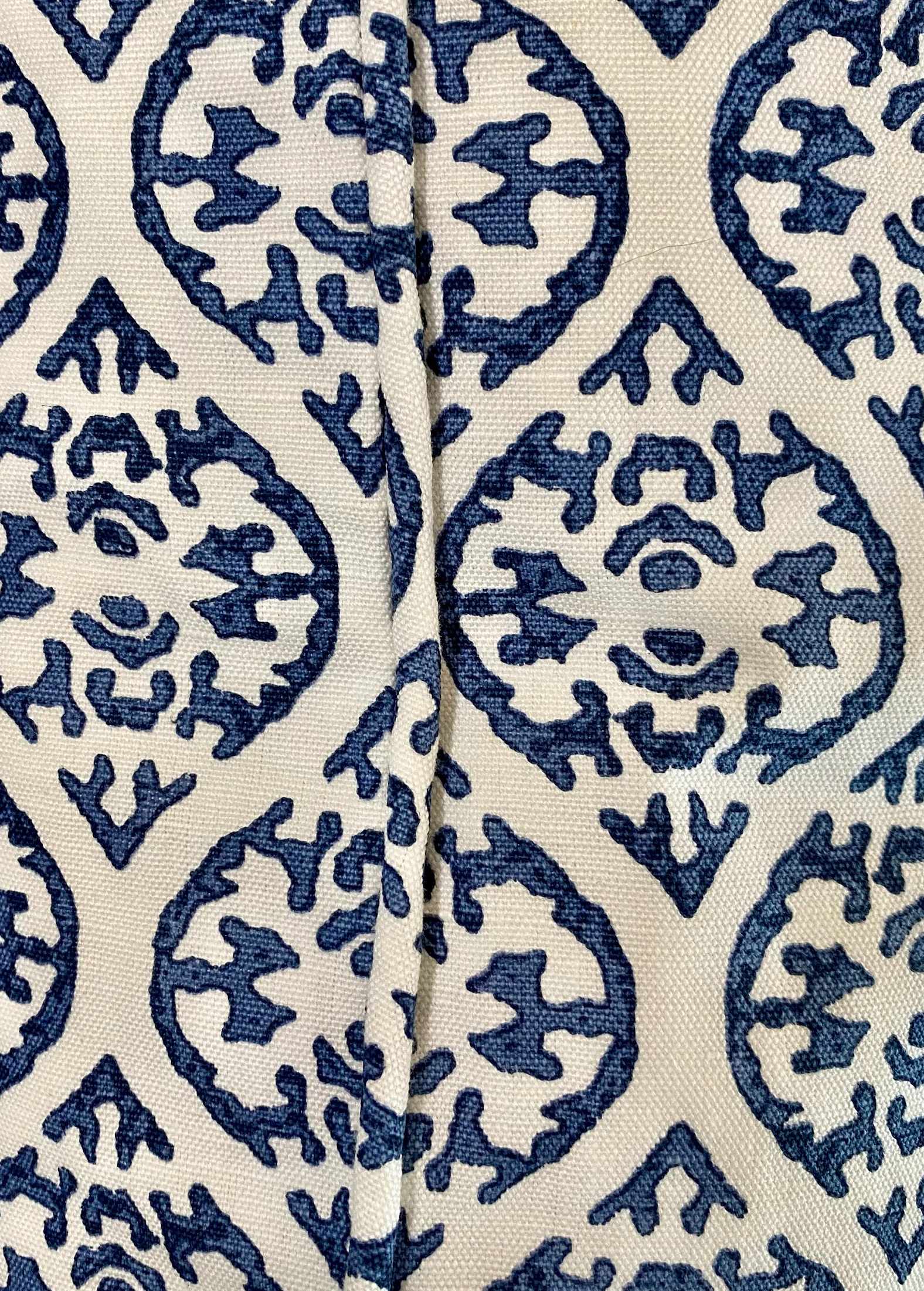 A professionally made rectangular cushion in block print "Elphin" by Jane Churchill and feather pad.