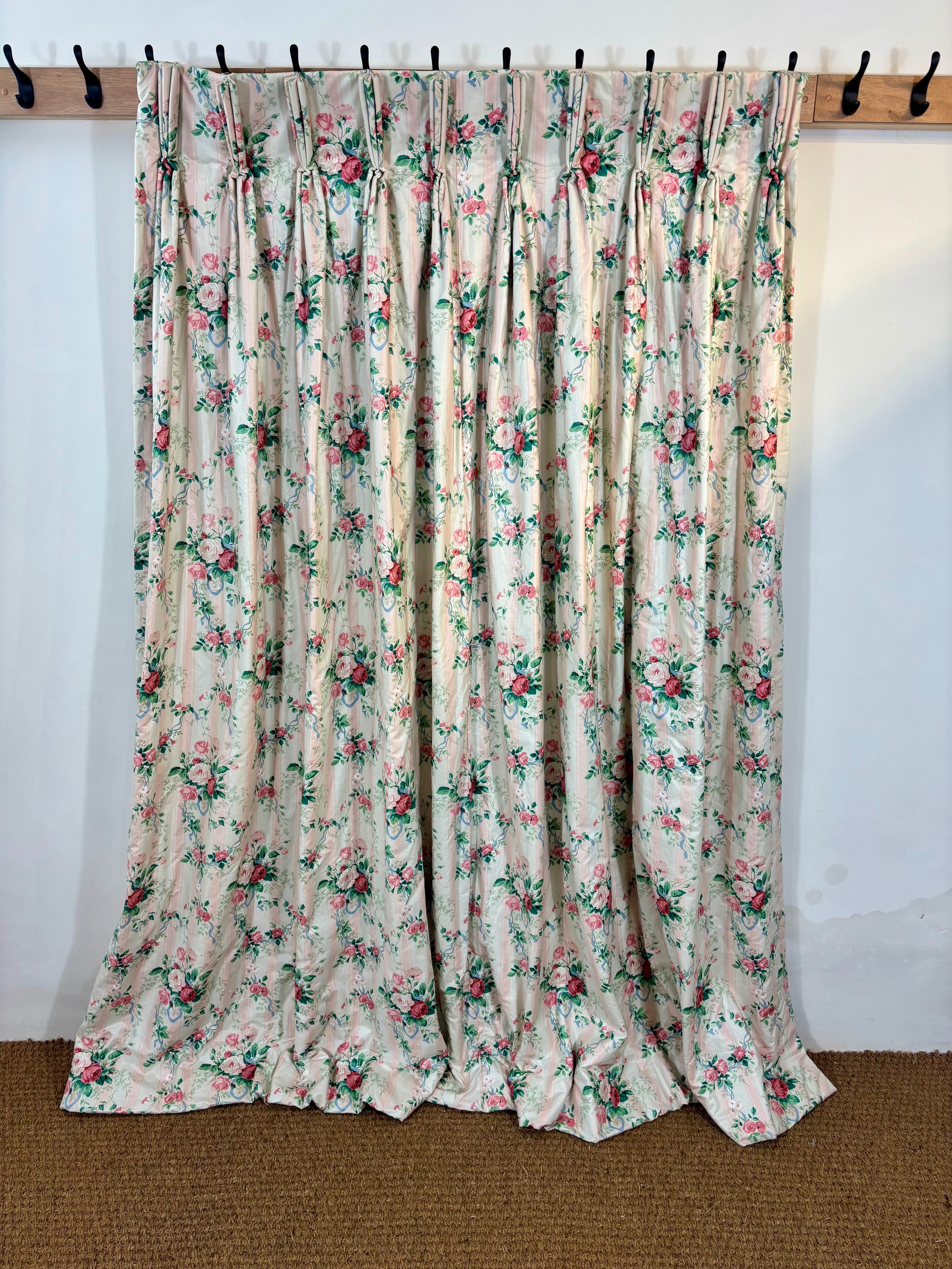 A pretty pair of vintage glazed chintz floral lined and interlined curtains.