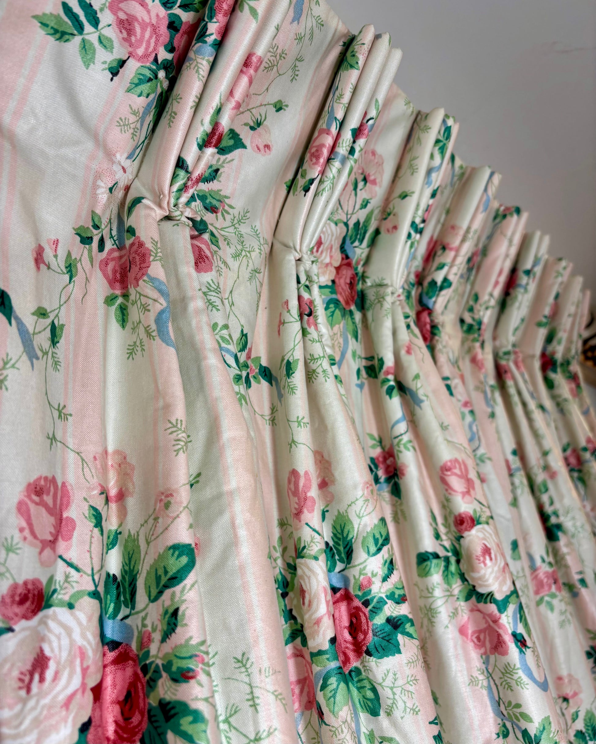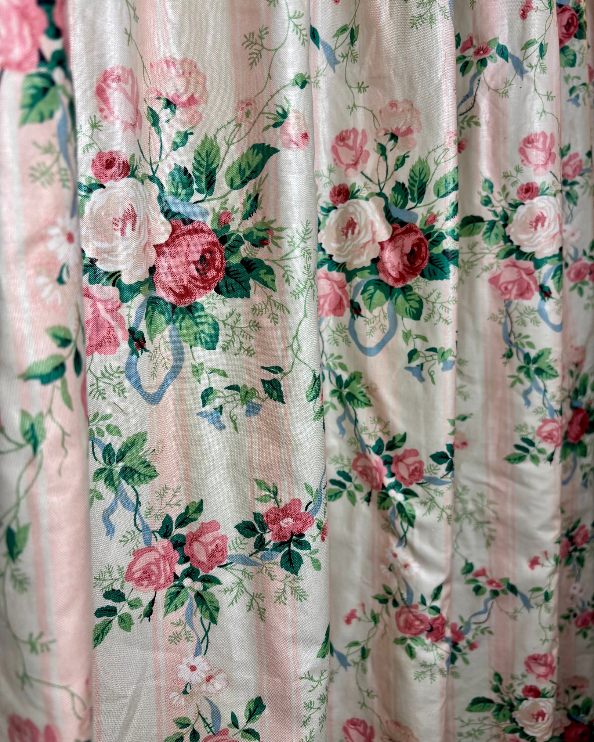 Fabric believed to be ‘Rose & Ribbon’ by Turnbull & Stockdale”.