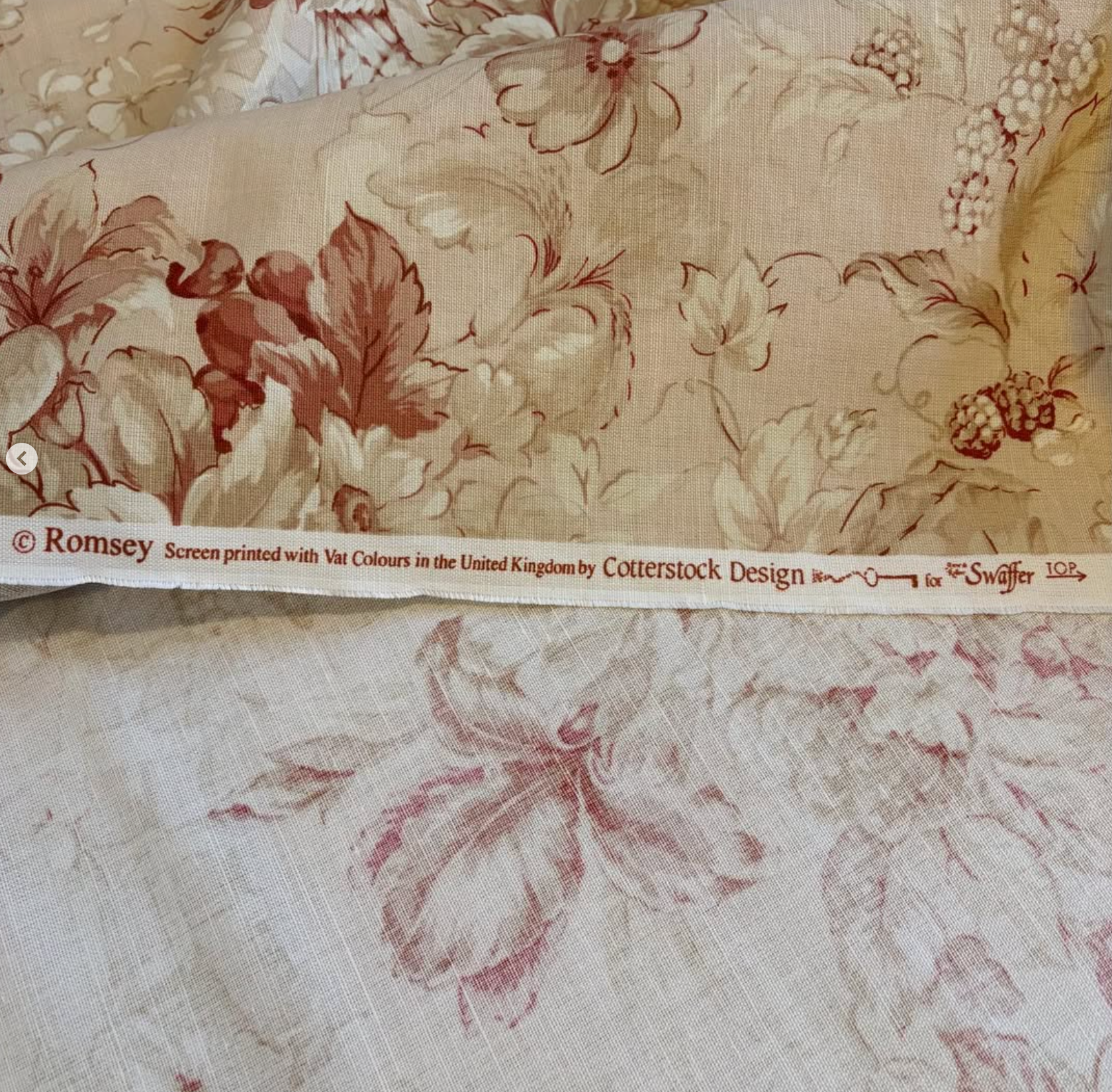 A large piece of floral print fabric by @swafferfabrics in lovely soft terracotta tones.