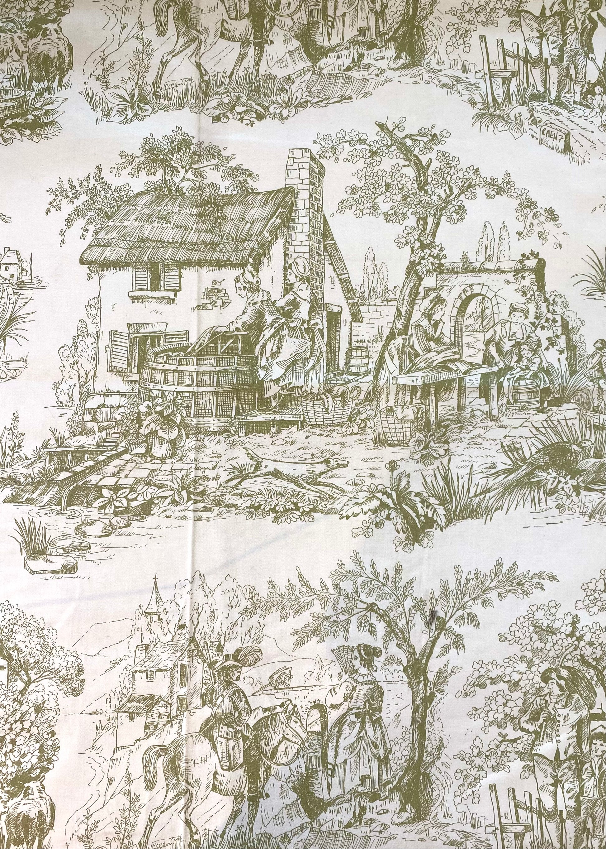 A large remnant of Green and Cream Toile by Sandown and Bourne