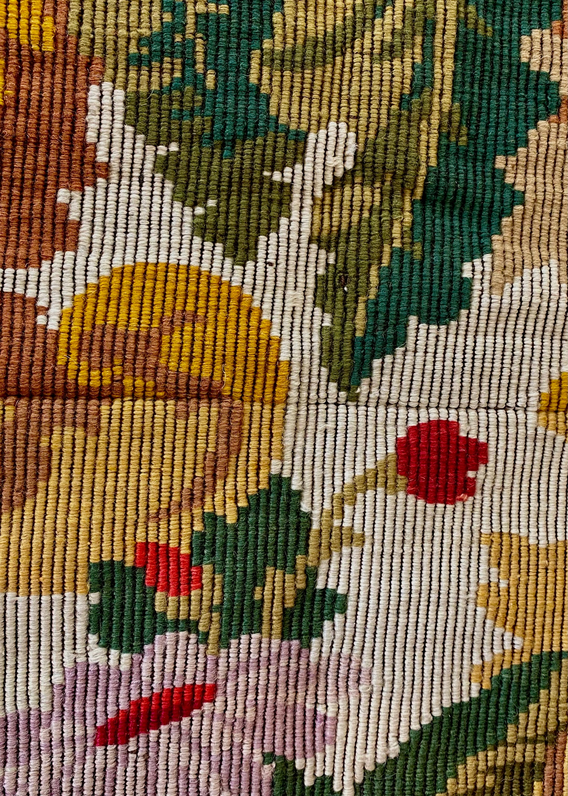 A piece of Antique Ottoman Weave fabric with large scale vibrant floral design - possibly aesthetic movement.