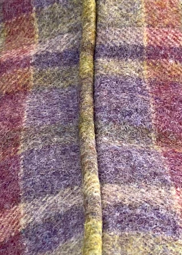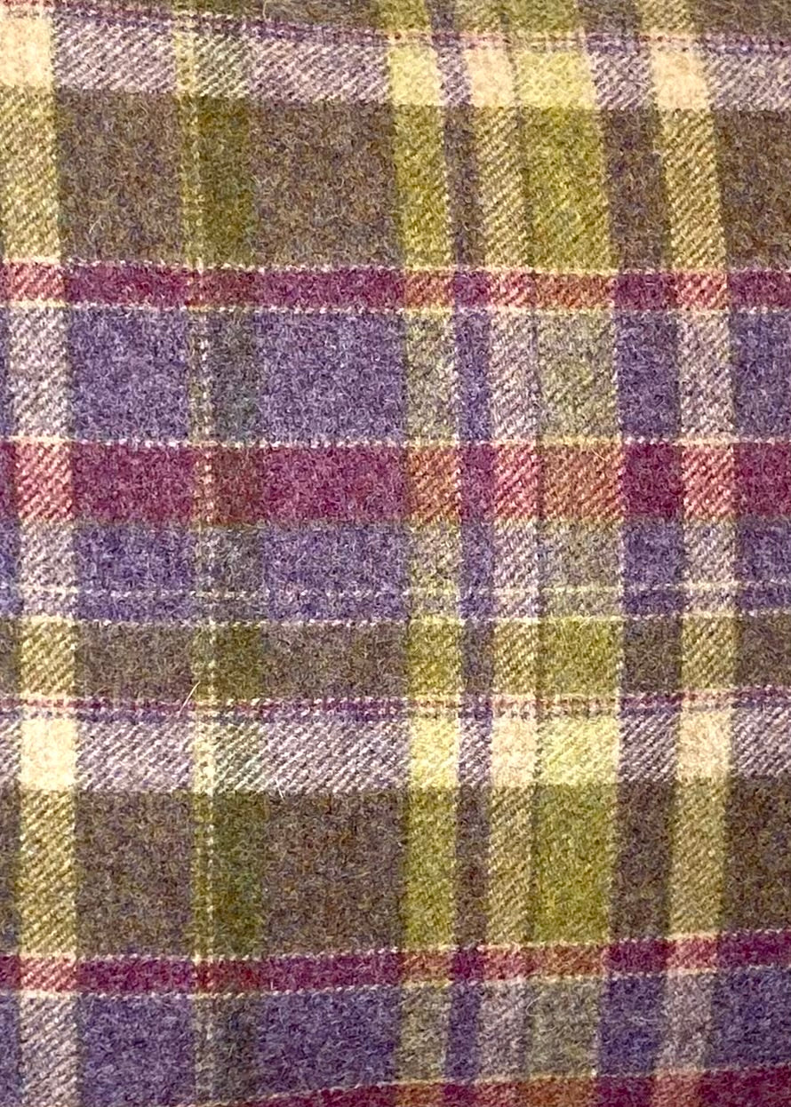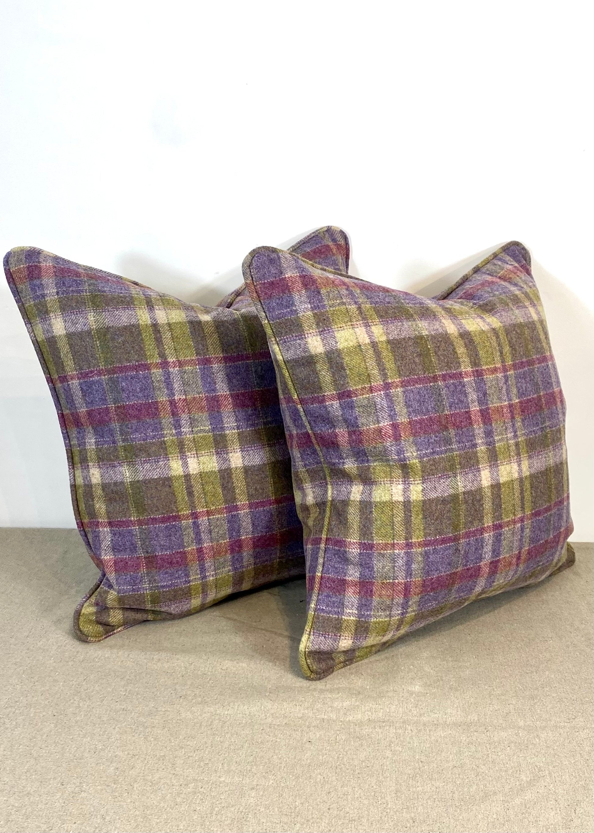 Professionally made in Suffolk - Purple and Green Plaid Piped Cushion with feather interior.