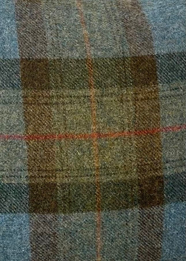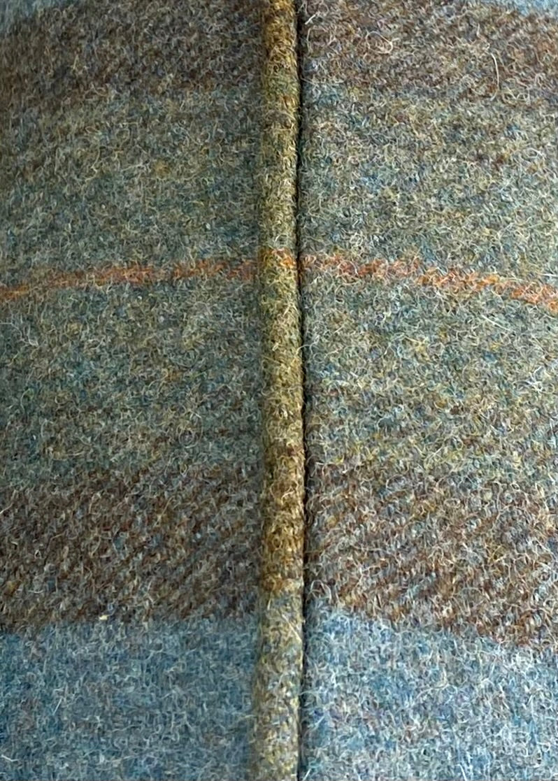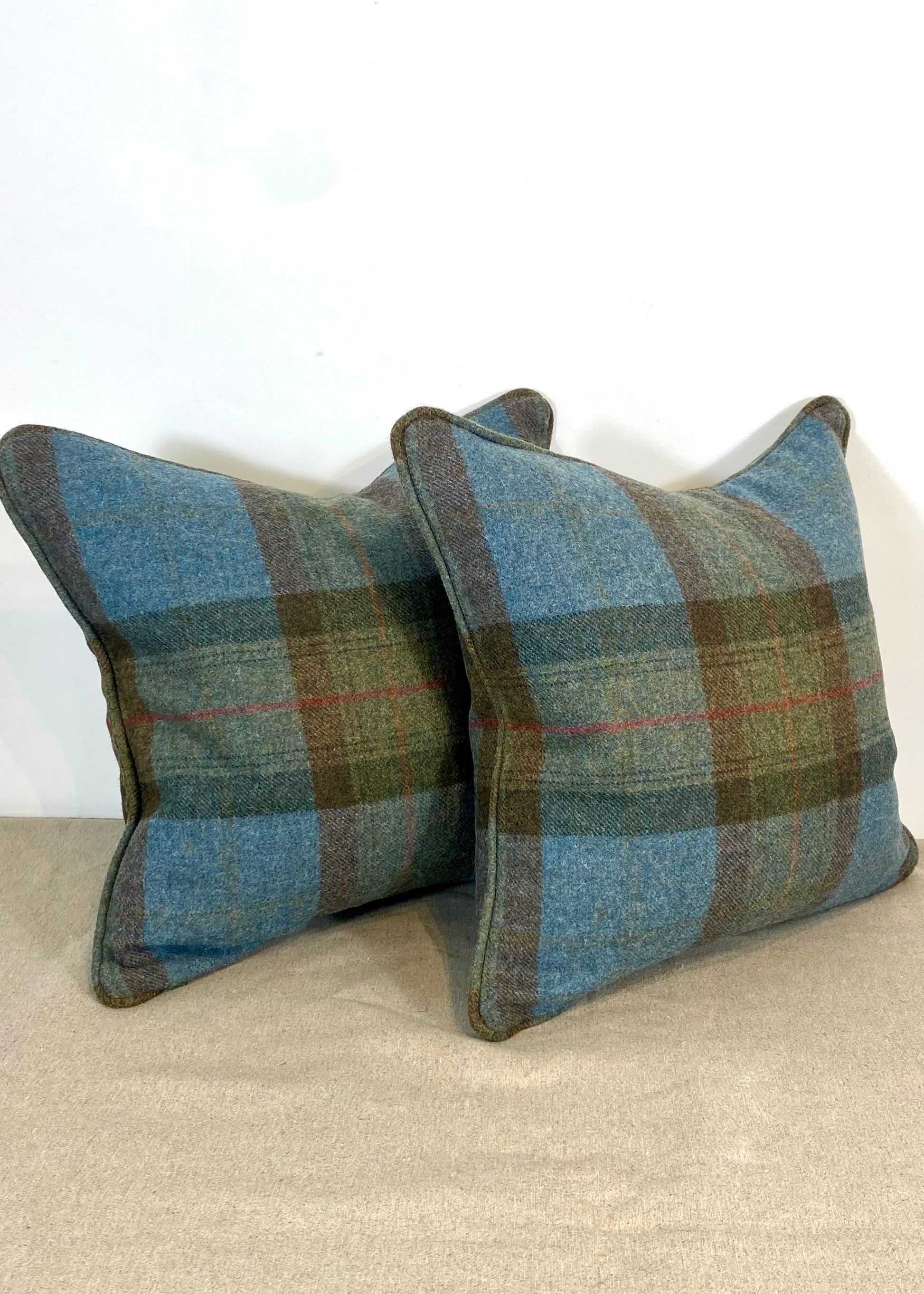 Professionally made in Suffolk - Teal/Green Mix Plaid Piped Cushion with feather interior.
